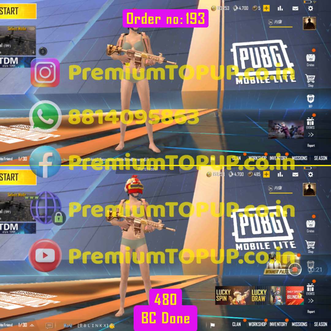 PUBG Lite 480 BC in-app Topup.